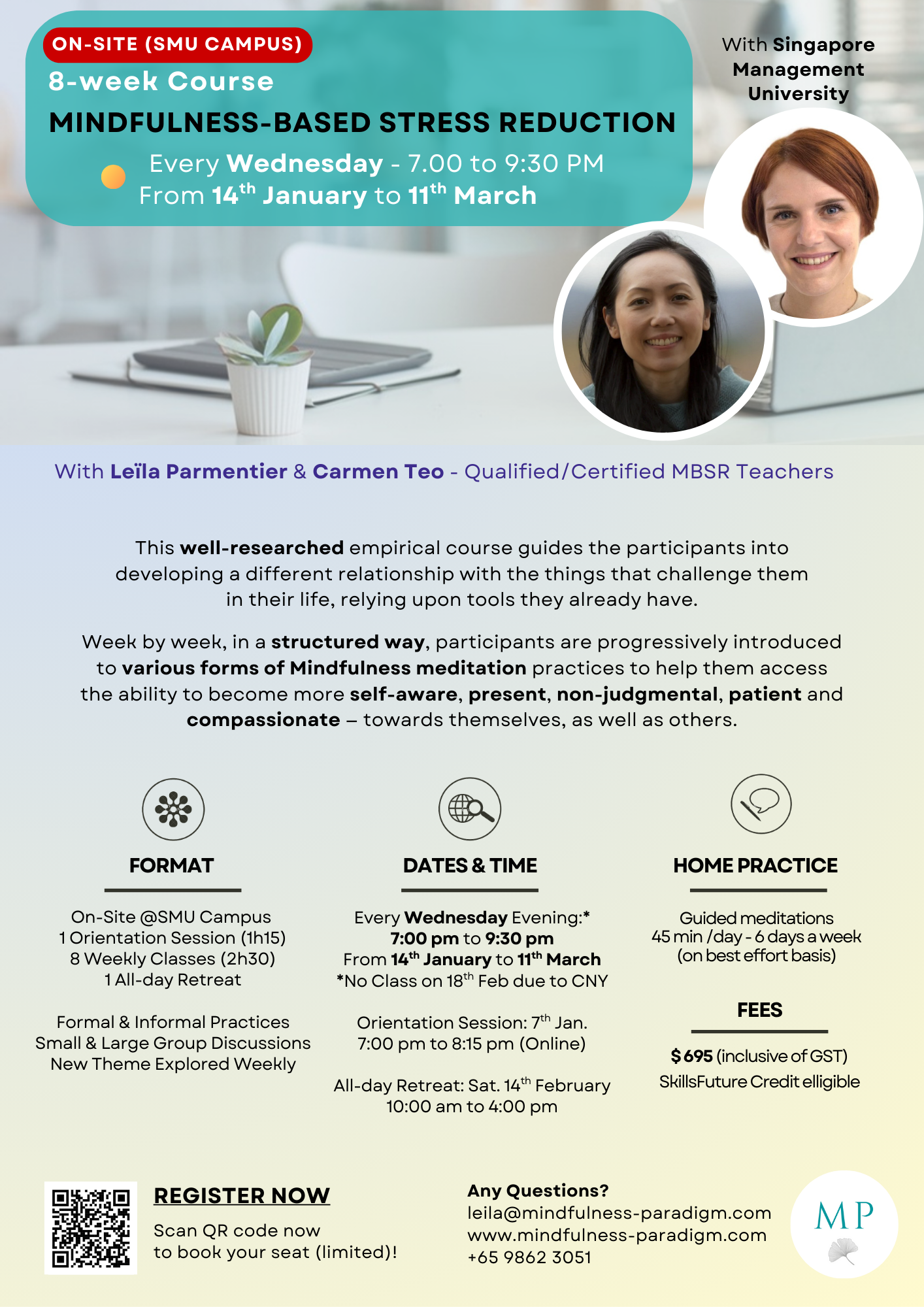 This course will be co-taught with Carmen Teo, Certified MBSR Teacher & Teacher Mentor.